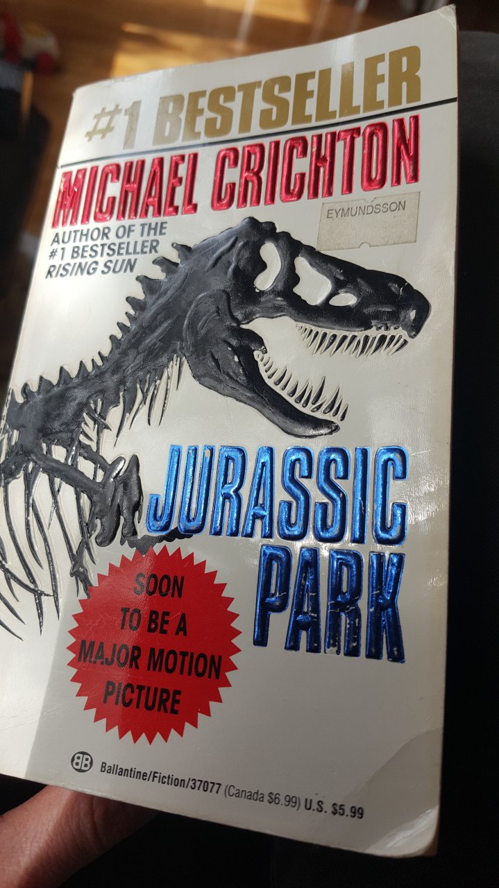 Það var í einu slíku draumagrafhýsi sem ég fann falinn fjársjóð. Það er ágætis afþreying að gramsa í gömlu bókunum á nytjamörkuðum. Stundum finnur maður fjársjóð sem heldur manni uppteknum næstu daga eða vikur. Nú síðast fann ég gamla klassík, Jurassic Park eftir Michael Crichton. Ég gleypti hana í mig og leið eins og krakka á nýjan leik sem ber óttablandna virðingu fyrir risaeðlum og ógnarafli vísindanna.