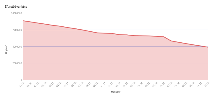 Í janúar setti ég mér það markmið að greiða húsnæðislánið niður í 5 milljónir fyrir lok 2018. Markmiðið tókst og núna stendur lánið í 4,9 milljónum. Núna set ég mér nýtt markmið og ætla að greiða lánið niður í 3 milljónir fyrir lok 2019.
